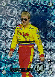 Inserts # Card Description Price Order # Blacks B2 Rusty Wallace Car $ 16.00 PP96MB02J B9 Ernie Irvan 9.00 PP96MB09 B11 Bill Elliott 18.00 PP96MB11J Silvers S4 Sterling Marlin 3.00 PP96MS04 View S6 Terry Labonte Car 3.00 PP96MS06 S12 Ricky Craven 3.00 PP96MS12 Base Cards # Card Description Price Order # 2 Rusty Wallace's Car .75 PP96MF02 4 Dale Earnhardt's Car 2.00 PP96MF04 5 Sterling Marlin .50 PP96MF05 View 6 Sterling Marlin's Car .25 PP96MF06 View 8 Terry Labonte's Iron Man Car .50 PP96MF08 View 9 Mark Martin 1.50 PP96MF09 View 10 Mark Martin's Car .75 PP96MF10 12 Ricky Rudd's Car .50 PP96MF12 13 Ted Musgrave .45 PP96MF13 15 Darrell Waltrip .45 PP96MF15 16 Bobby Allison .45 PP96MF16 17 Bobby Labonte 1.50 PP96MF17 View 18 Michael Waltrip .75 PP96MF18 19 Jeff Gordon 2.00 PP96MF19 View 21 Ken Schrader .45 PP96MF21 22 Ernie Irvan .45 PP96MF22 23 Ernie Irvan's Car .25 PP96MF23 24 Steve Grissom .45 PP96MF24 25 Johnny Benson .45 PP96MF25 View 26 Bobby Hamilton .45 PP96MF26 28 Ricky Craven .45 PP96MF28 30 Kyle Petty .45 PP96MF30 32 David Pearson .45 PP96MF32 35 Bill Elliott 1.00 PP96MF35 36 Bill Elliott's Car .50 PP96MF36 View 37 Jeremy Mayfield .45 PP96MF37 38 Jeff Burton 1.00 PP96MF38 39 Cale Yarborough .45 PP96MF39 40 Jeff Gordon 2.00 PP96MF40 41 Mark Martin 1.50 PP96MF41 43 Bill Elliott 1.00 PP96MF43 44 Ernie Irvan .45 PP96MF44