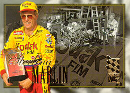 Inserts # Card Description Price Order # Emerald Proofs 33 Jeff Green 4.00 PP96VE33 43 Texaco Havoline #28 1.50 PP96VE43 51 Danny Glad 3.00 PP96VE51 Autographs 35 Chad Little 10.00 PP96VA35 49 David Smith 6.00 PP96VA49 Head Gear HG4 Ernie Irvan 2.00 PP96VHG4 HG5 Mark Martin 8.00 PP96VHG5J HG7 Rusty Wallace 8.00 PP96VHG7J HG9 Michael Waltrip 3.50 PP96VHG9 Head Gear - Die Cuts! HG5 Mark Martin 16.00 PP96VHD5 HG8 Darrell Waltrip 6.00 PP96VHD8 HG9 Michael Waltrip 7.00 PP96VHD9 Top Flight - Sam Bass SB1 Dale Earnhardt 29.00 PP96VSB1J SB2 Bill Elliott 6.00 PP96VSB2J SB3 Terry Labonte 6.00 PP96VSB3J SB4 Mark Martin 11.00 PP96VSB4J SB5 Rusty Wallace 11.00 PP96VSB4 Top Flight - Gold! SB2 Bill Elliott 12.00 PP96VSBG2J SB3 Terry Labonte 12.00 PP96VSBG3J War Paint WP4 Terry Labonte 4.00 PP96VW04 WP10 Michael Waltrip 3.00 PP96VW10 WP18 Bill Elliott 4.00 PP96VW18 Base Cards # Card Description Price Order # 1 John Andretti .20 PP96V01 2 Johnny Benson .20 PP96V02 3 Geoff Bodine .20 PP96V03 4 Jeff Burton .40 PP96V04 5 Ward Burton .20 PP96V05 6 Ricky Craven .20 PP96V06 7 Wally Dallenbach .20 PP96V07 10 Jeff Gordon 1.50 PP96V10 11 Bobby Hamilton .20 PP96V11 12 Ernie Irvan .20 PP96V12 13 Dale Jarrett 1.00 PP96V13 14 Bobby Labonte 1.00 PP96V14 15 Terry Labonte .30 PP96V15 16 Sterling Marlin .20 PP96V16 View 17 Mark Martin 1.00 PP96V17 18 Jeremy Mayfield .20 PP96V18 19 Ted Musgrave .20 PP96V19 20 Joe Nemechek .20 PP96V20 21 Kyle Petty .20 PP96V21 22 Robert Pressley .20 PP96V22 23 Ricky Rudd .20 PP96V23 24 Ken Schrader .20 PP96V24 25 Morgan Shepherd .20 PP96V25 26 Mike Skinner .20 PP96V26 27 Rusty Wallace 1.00 PP96V27 View 28 Darrell Waltrip .20 PP96V28 29 Michael Waltrip .20 PP96V29 31 Mark Martin 1.00 PP96V31 32 David Green .20 PP96V32 33 Jeff Green .20 PP96V33 34 Jason Keller .20 PP96V34 35 Chad Little .20 PP96V35 36 Mike McLaughlin .20 PP96V36 37 Dupont Finishes #24 .75 PP96V37 38 GM Goodwrench #3 1.50 PP96V38 39 McDonald's #94 .20 PP96V39 40 Miller #2 .50 PP96V40 41 Quality Care #88 .50 PP96V41 42 STP #43 .15 PP96V42 43 Texaco Havoline #28 .15 PP96V43 44 Tide #10 .15 PP96V44 45 Valvoline #6 .50 PP96V45 46 Ray Evernham .15 PP96V46 47 Steve Hmiel .15 PP96V47 48 Larry McReynolds .15 PP96V48 49 David Smith .15 PP96V49 50 Jeff Andrews .15 PP96V50 51 Danny Glad .15 PP96V51 52 Charlie Siegars .15 PP96V52 53 Rick Wetzel .15 PP96V53 54 Checklist .10 PP96V54 Torquers (Silver) # Card Description Price Order # 2 Johnny Benson .30 PP96VT02 4 Jeff Burton .60 PP96VT04 8 Dale Earnhardt 5.00 PP96VT08 9 Bill Elliott 1.00 PP96VT09 10 Jeff Gordon 3.00 PP96VT10 11 Bobby Hamilton .30 PP96VT11 15 Terry Labonte 1.00 PP96VT15 19 Ted Musgrave .30 PP96VT19 20 Joe Nemechek .30 PP96VT20 21 Kyle Petty .30 PP96VT21 22 Robert Pressley .30 PP96VT22 23 Ricky Rudd .40 PP96VT23 24 Ken Schrader .30 PP96VT24 25 Morgan Shepherd .30 PP96VT25 26 Mike Skinner .30 PP96VT26 28 Darrell Waltrip .30 PP96VT28 34 Jason Keller .30 PP96VT34 37 Dupont Finishes #24 1.50 PP96VT37 38 GM Goodwrench #3 2.50 PP96VT38 40 Miller #2 .75 PP96VT40 43 Texaco Havoline #28 .20 PP96VT43 44 Tide #10 .20 PP96VT44 47 Steve Hmiel .20 PP96VT47 48 Larry McReynolds .20 PP96VT48 51 Danny Glad .20 PP96VT51 52 Charlie Siegars .20 PP96VT52 54 Checklist .15 PP96VT54