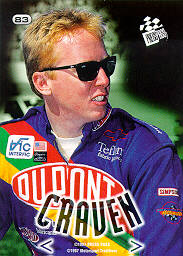 Inserts # Card Description Price Order # Autographs AU1 Terry Labonte 29.00 PP97AU01 AU22 Joe Nemechek 10.00 PP97AU22 AU32 Rodney Combs 9.00 PP97AU32 Burning Rubber BR2 Dale Earnhardt 149.00 PP97BR2J Banquet Bound BB1 Terry Labonte 2.50 PP97BB01J BB2 Jeff Gordon 7.00 PP97BB02 BB3 Dale Jarrett 5.00 PP97BB03 BB4 Dale Earnhardt 9.00 PP97BB04 BB6 Ricky Rudd 4.00 PP97BB06 BB7 Rusty Wallace 5.00 PP97BB07 BB9 Bobby Hamilton 1.00 PP97BB09 Clear Cut C5 Bobby Labonte 5.00 PP97C05 Victory Lane 1A Dale Earnhardt 12.00 PP97VL1A 2A Jeff Gordon 8.00 PP97VL1AJ 4A Dale Jarrett 5.00 PP97VL4A 5A Terry Labonte 2.00 PP97VL5A 7A Ricky Rudd 2.00 PP97VL7A 8A Rusty Wallace 5.00 PP97VL8AJ Cup Chase CC1 Johnny Benson 3.00 PP97CC01 CC13 Sterling Marlin 3.00 PP97CC13 Cup Chase Gold Die Cut CC6 Bill Elliott 9.00 PP97CD06 CC7 Jeff Gordon 20.00 PP97CD07J CC10 Dale Jarrett 12.00 PP97CD10J CC12 Terry Labonte 9.00 PP97CD12J CC14 Mark Martin 12.00 PP97CD14J CC15 Kyle Petty 2.00 PP97CD15 CC16 Ricky Rudd 9.00 PP97CD16 CC18 Rusty Wallace 15.00 PP97CD18J CC19 Michael Waltrip 5.00 PP97CD19 Lasers (Silver Foil) We have many "Laser" equivalents of the cards below. Lasers are priced at twice the base card price listed below. E-Mail jim@collectiveracing.com with your specific needs. Thanks! Base Cards # Card Description Price Order # 3 Dale Jarrett .75 PP97003 View 5 Mark Martin .75 PP97005 View 6 Ricky Rudd .50 PP97006 8 Sterling Marlin .30 PP97008 9 Bobby Hamilton .30 PP97009 10 Ernie Irvan .30 PP97010 11 Bobby Labonte .75 PP97011 12 Ken Schrader .30 PP97012 13 Jeff Burton .50 PP97013 14 Michael Waltrip .30 PP97014 15 Ted Musgrave .30 PP97015 16 Geoff Bodine .30 PP97016 17 Rick Mast .30 PP97017 18 Morgan Shepherd .30 PP97018 19 Ricky Craven .30 PP97019 20 Johnny Benson .30 PP97020 23 Kyle Petty .30 PP97023 24 Kenny Wallace .30 PP97024 View 26 Bill Elliott .75 PP97026 27 Robert Pressley .30 PP97027 28 Ward Burton .30 PP97028 30 Mike Skinner .30 PP97030 View 32 Earnhardt's Goodwrench Chevy 1.50 PP97032 33 Marlin's Kodak Chevy .20 PP97033 36 Rudd's Tide Ford .20 PP97036 39 Gordon's Dupont Chevy .75 PP97039 40 Irvan's Havoline Ford .20 PP97040 41 Craven's Kodiak Chevy .20 PP97041 42 Petty's Coors Light Pontiac .20 PP97042 43 Hamilton's STP Pontiac .20 PP97043 45 Elliott's Son (Chase) in car .20 PP97045 46 Mike Bliss .20 PP97046 47 Rick Carelli .20 PP97047 48 Ron Hornaday .30 PP97048 49 Butch Miller .20 PP97049 50 Joe Ruttman .20 PP97050 51 Bill Sedgwick .20 PP97051 53 Rusty Wallace .50 PP97053 54 Darrell Waltrip .20 PP97054 55 Benson's Pontiac - Japan .20 PP97055 58 Irvan's Ford - Japan .20 PP97058 59 Jarrett's Ford - Japan .50 PP97059 60 T. Labonte's Chevy - Japan .30 PP97060 61 Marlin's Chevy - Japan .20 PP97061 62 R. Wallace's Ford - Japan .50 PP97062 64 Todd Bodine .20 PP97064 65 Rodney Combs .20 PP97065 66 Ricky Craven .20 PP97066 67 Jeff Fuller .20 PP97067 68 David Green .20 PP97068 69 Jeff Green .20 PP97069 70 Dale Jarrett .75 PP97070 71 Jason Keller .20 PP97071 72 Terry Labonte .50 PP97072 73 Randy Lajoie .20 PP97073 74 Chad Little .30 PP97074 75 Mark Martin .75 PP97075 77 Larry Pearson .20 PP97077 78 Michael Waltrip .30 PP97078 79 Michael Waltrip .30 PP97079 80 Dale Jarrett .75 PP97080 81 Bobby Labonte .75 PP97081 82 Terry Labonte .50 PP97082 View 83 Ricky Craven .30 PP97083 View 84 Rusty Wallace .75 PP97084 85 Ken Schrader .30 PP97085 86 Mike Wallace .30 PP97086 87 Jeremy Mayfield .30 PP97087 88 Chad Little .30 PP97088 89 Mark Martin .75 PP97089 90 Kenny Wallace .30 PP97090 91 Robby Gordon .30 PP97091 92 Jimmy Johnson .20 PP97092 93 M. Waltrip / D. Pearson .30 PP97093 95 Earnhardt's Goodwrench Chevy 1.50 PP97095 96 Dupont Chevy / Quality Care Ford .50 PP97096 97 T. Labonte / R. Petty .50 PP97097 98 Sterling Marlin .30 PP97098 99 Wallace's Miller Ford .30 PP97099 100 Michael Waltrip .30 PP97100 102 Dale Jarrett .75 PP97102 103 Geoff Bodine .30 PP97103 106 T. Labonte's Honey Crunch Chevy .30 PP97106 108 Bobby Hamilton / R. Petty .30 PP97108 111 Randy Lajoie .30 PP97111 112 Mark Martin .75 PP97112 113 Ron Hornaday .30 PP97113 114 Kelly Tanner .20 PP97114 115 Joe Kosiski .20 PP97115 116 Lyndon Amick .20 PP97116 117 Dave Dion .20 PP97117 118 Tony Hirschman .20 PP97118 119 Chris Raudman .20 PP97119 120 Mike Cope .20 PP97120 121 Kyle Petty .30 PP97121 123 Michael Waltrip .30 PP97123 124 Dale Jarrett .75 PP97124 126 Joe Nemechek .30 PP97126 127 Steve Grissom .30 PP97127 129 Mike Wallace .30 PP97129 130 Elliott's McDonalds Ford .30 PP97130 131 Ken Schrader .30 PP97131 132 Wally Dallenbach .30 PP97132 133 Derrike Cope .30 PP97133 136 Jeff Gordon 1.00 PP97136 138 Jeff Gordon 1.00 PP97138 View 139 Checklist .20 PP97139 140 Checklist .20 PP97140